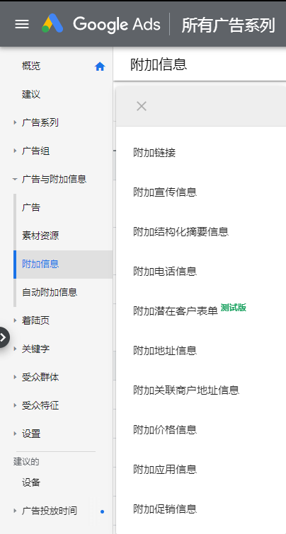 所以,使用广告附加信息不仅不用加钱,同时还能带来好处。附加信息有好几种选择,以下是经常被使用的附加信息种类: