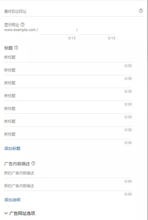如果希望获得更好的Google搜索广告效果,就需要把所有的文案行都填满,要确保每个广告组合中都有2个以上的广告创意,并将广告设置为轮播,然后可以依照广告投放数据判断哪个效果更好,并再次替换新的创意版本进行测试比较。这个过程就是俗称的A/B测试。