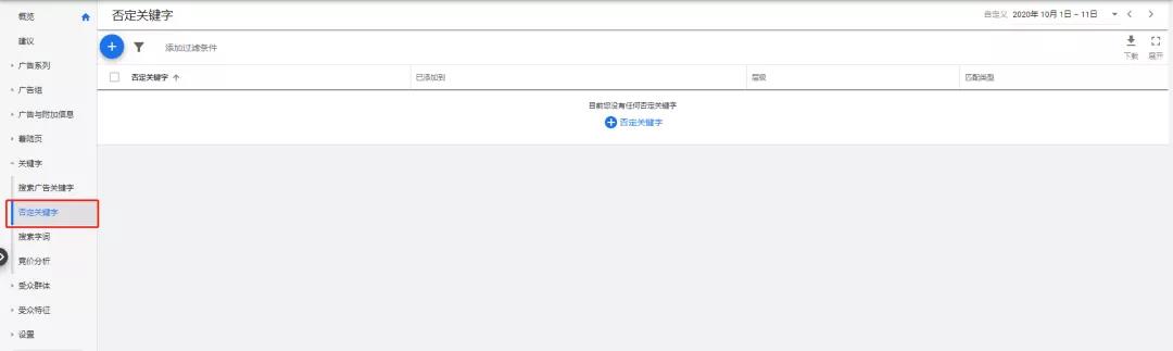 b.否定关键字——可以把不相关的关键字排除在外,提升广告的精准度。